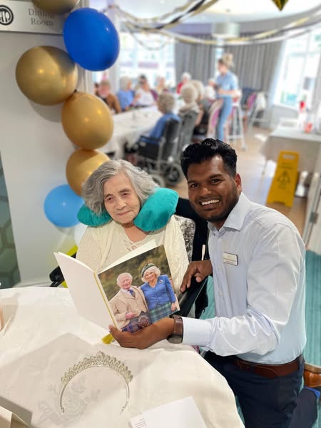 Meanwhile, at Kingswood Court Care Home,  Joyce  Jones, pictured with manager Mathan Balasubramaniyan celebrated her 108th birthday with a party hosted by singer Frankie Johns.